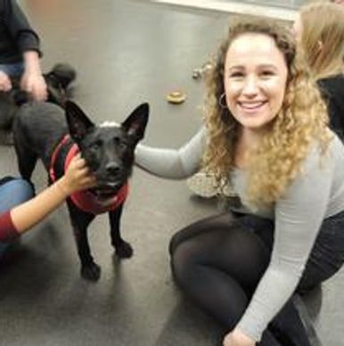 Phoebe (previously Shamrock) came back to us for the day, kindly leant by her adoptive family, to come and help the Coventry University students destress before their exams!